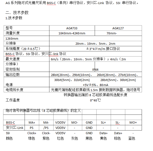 SSI時鐘頻率輸入 | ≦750KHz | 取決于電纜長度 |